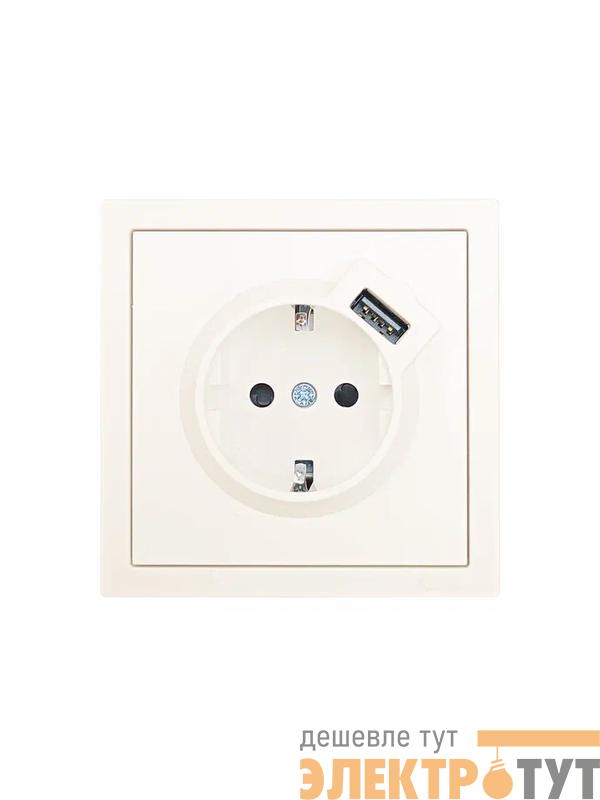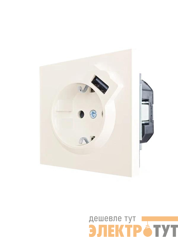 704-9088-181 | Розетка 1-мест. с/з+USB разъем СП ZIMA IP20 слон. кость LEZARD
