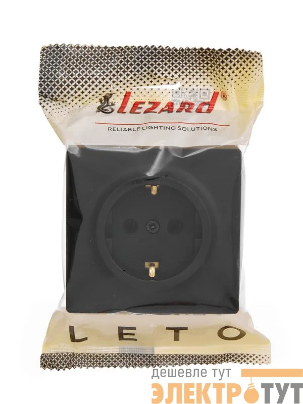 752-4200-122B | Розетка 1-м ОП LETO с заземл. ПБТ черн. бархат LEZARD