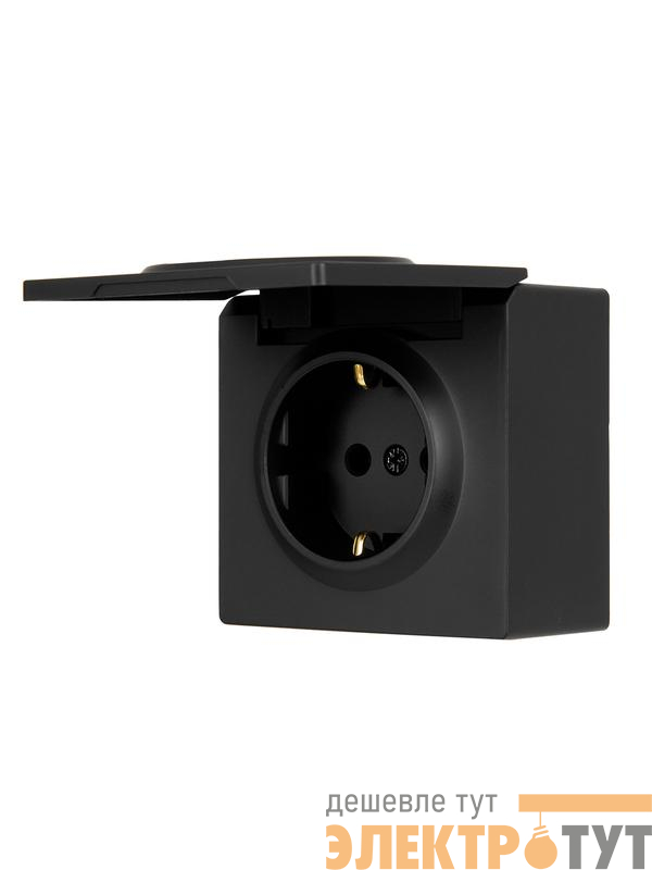 752-4200-123B | Розетка 1-м ОП LETO с заземл. с крышкой LETO ПБТ черн. бархат LEZARD