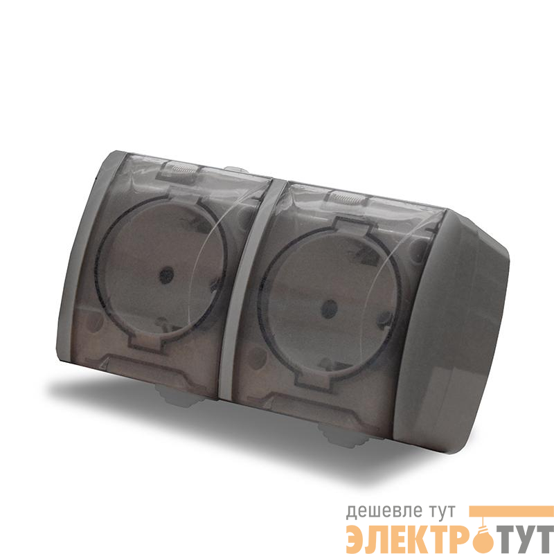 К2232-Gr | Розетка 2-м ОП Клио 16А IP54 с заземл. с прозр. крышкой сер. UNIVersal