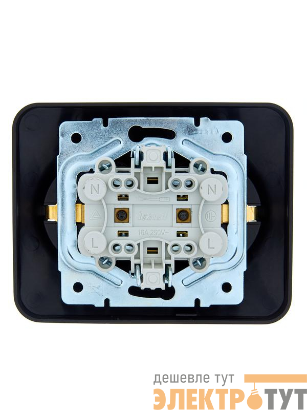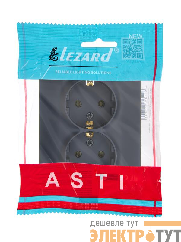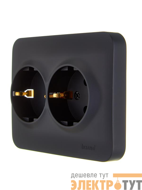 7081-4200-127B | Розетка 2-м СП ASTI 16А IP20 с заземл. термопласт черн. бархат LEZARD