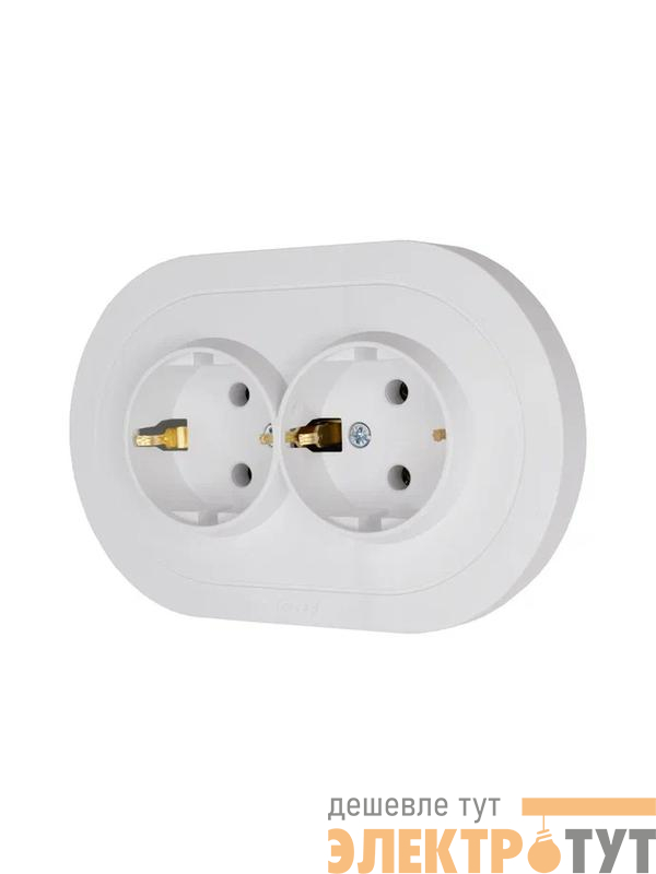 744-0200-127B | Розетка 2-м СП OSEN с заземл. ПБТ круглая механизм бел. LEZARD