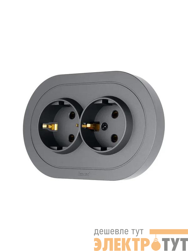 744-7400-127B | Розетка 2-м СП OSEN с заземл. ПБТ круглая механизм сер. матов. LEZARD
