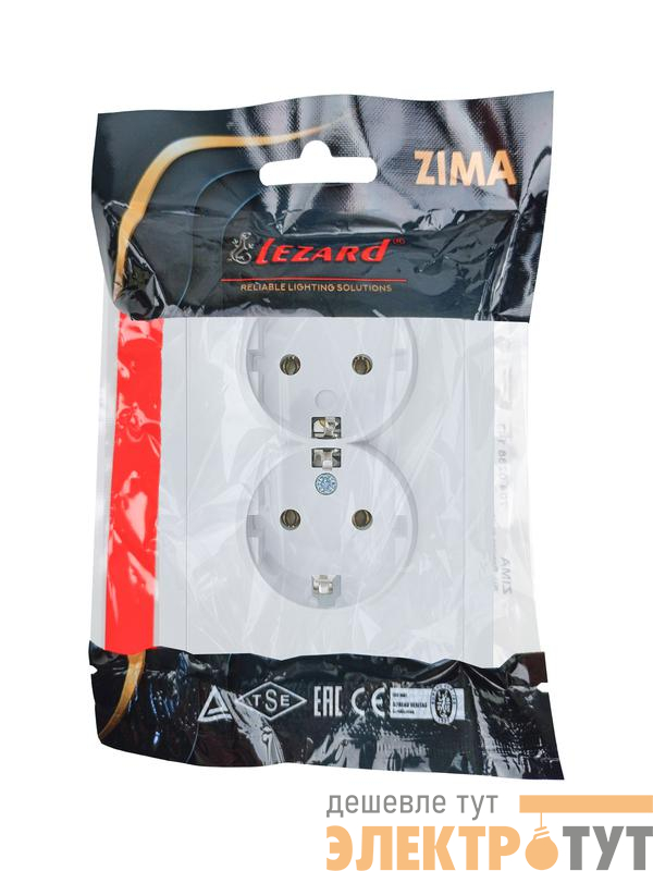 704-0200-127BQC | Розетка 2-мест. с/з СП ZIMA IP20 16А ПБТ безвинт. зажим бел. LEZARD