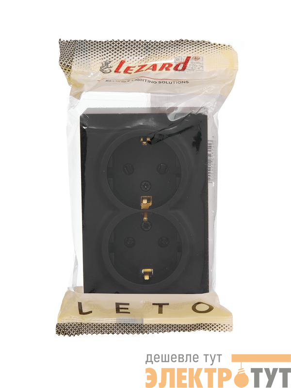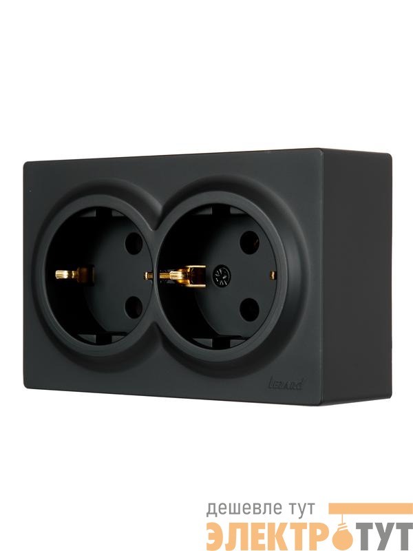 752-4200-127B | Розетка 2-м ОП LETO с заземл. закрытый корпус ПБТ черн. бархат LEZARD