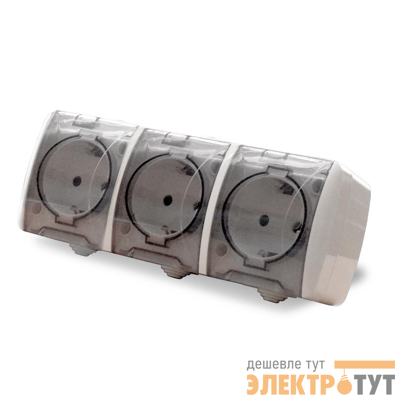К2235 | Розетка 3-м ОП Клио 16А IP54 с заземл. с прозр. крышкой бел. Universal