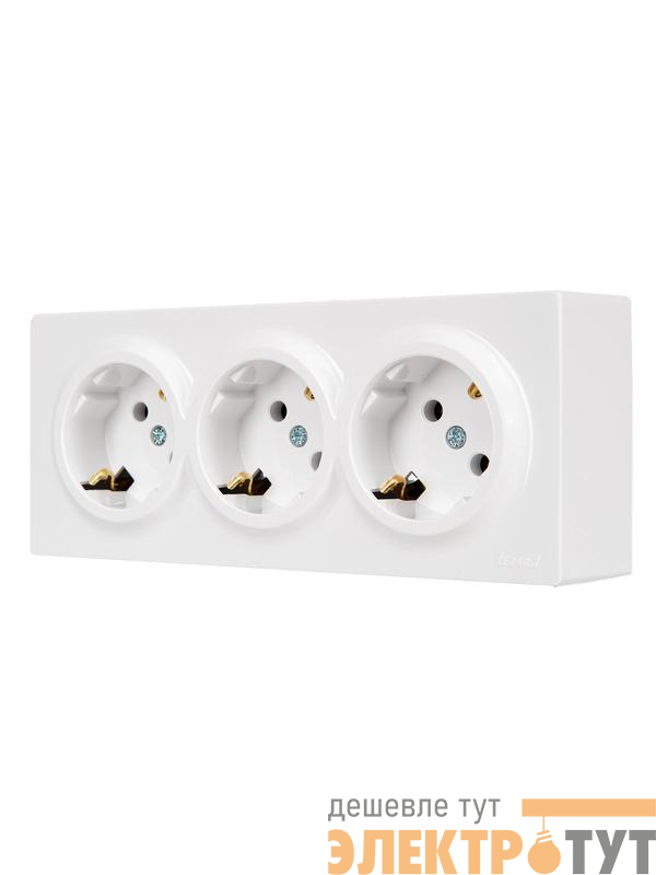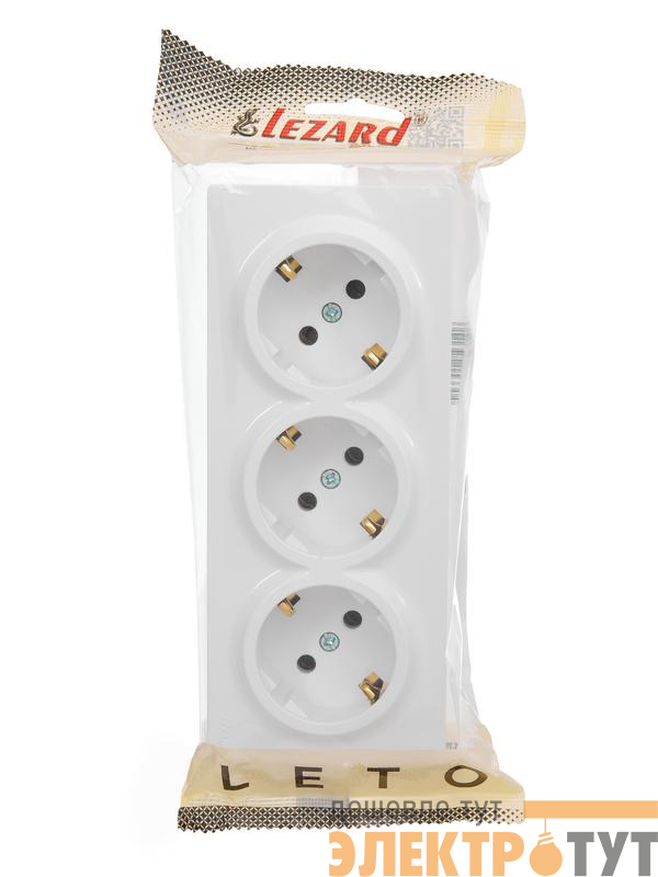 752-0200-127BUP | Розетка 3-м ОП LETO с заземл. закрытый корпус ПБТ бел. LEZARD