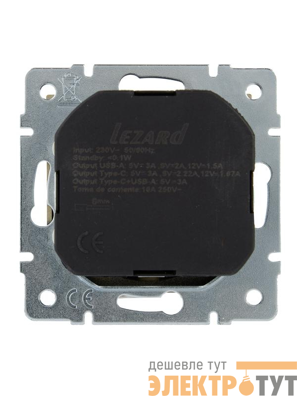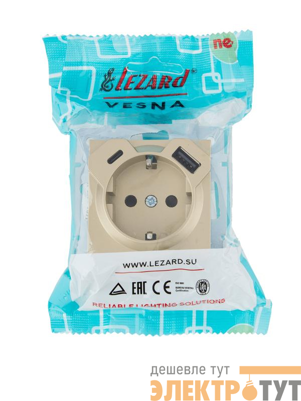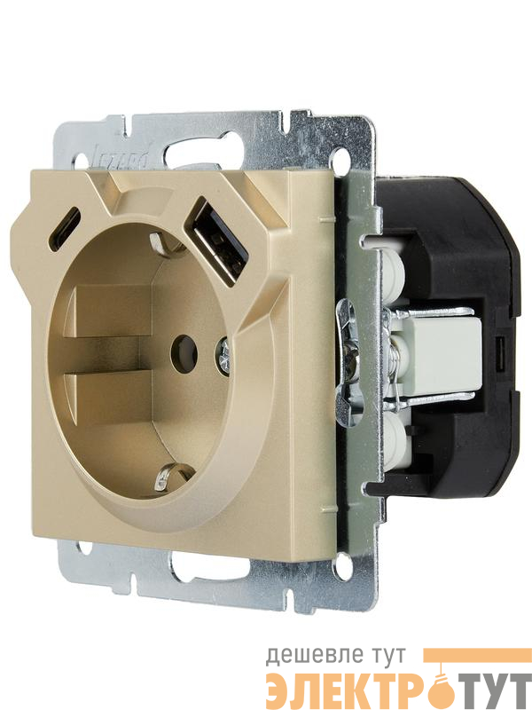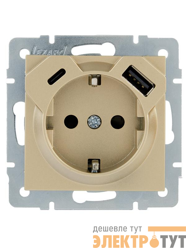 742-3688-181TC | Розетка с заземл. TC+USB разъем VESNA зол. LEZARD