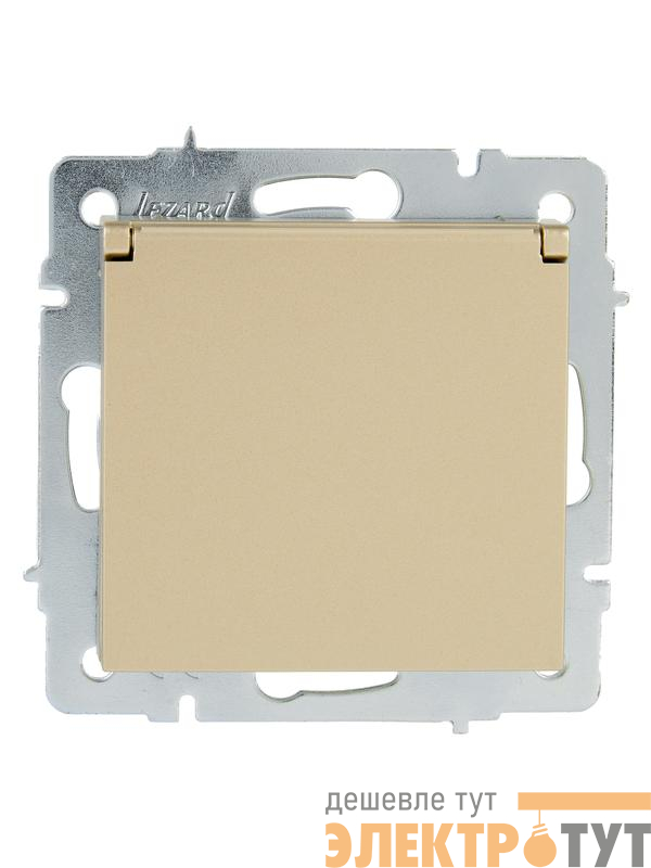 742-3688-123B | Розетка с заземл. VESNA с крышкой ПБТ зол. LEZARD