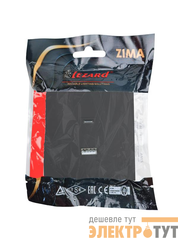 704-4288-192TC | Розетка Type-C+ USB разъем СП ZIMA IP20 черн. бархат LEZARD
