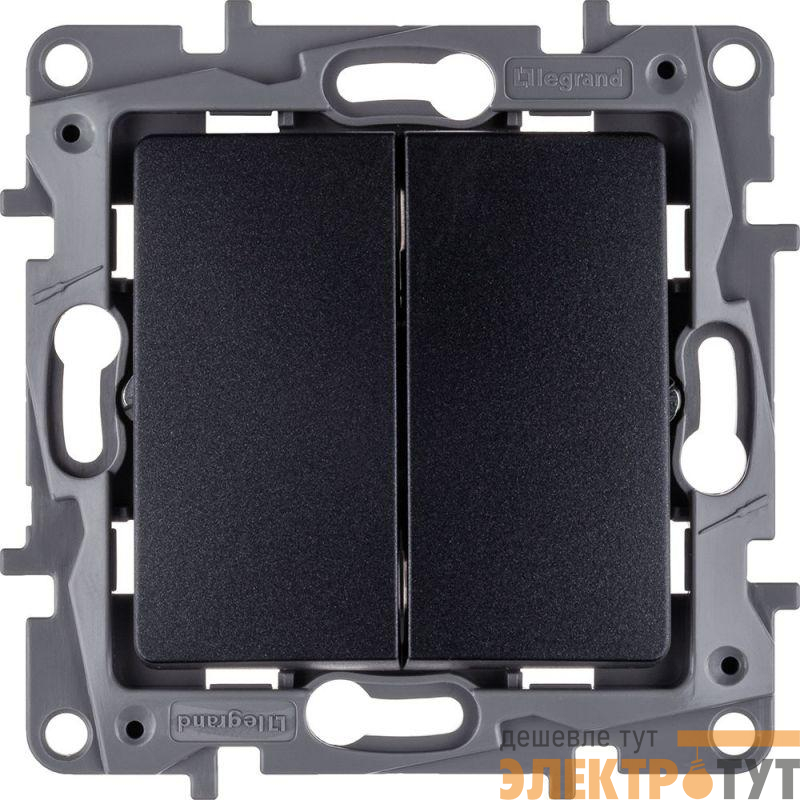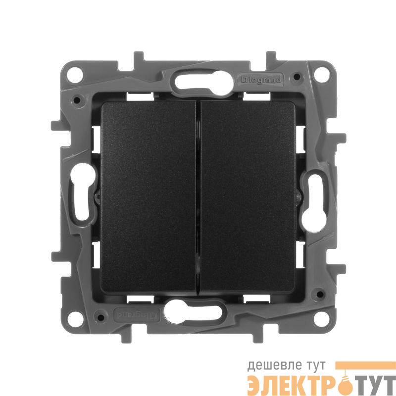 Выключатель двухклавишный ETIKA для скрытого монтажа, номинальный ток 10 А, предназначен для управления двумя электрическими цепями.