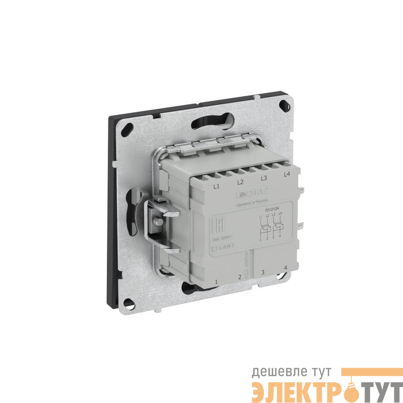 Двухклавишный инвертор применяется для управления двумя контурами освещения из 3 мест. Предназначен для скрытого монтажа в стену. Характеристики устройства: номинальное напряжение 250 В, номинальный ток 16 А. Материал: металл, поликарбонат. Пластиковые элементы имеют цвет "Черный уголь". Для декоративного оформления электроустановочных изделий используются рамки серии "KANT".