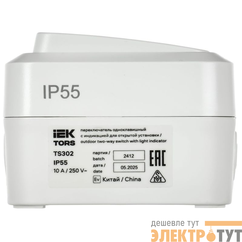 TS-V10-1-10-55-K01 | Переключатель 1-кл. ОП TORS 10А IP55 TS302 с индикацией бел. IEK