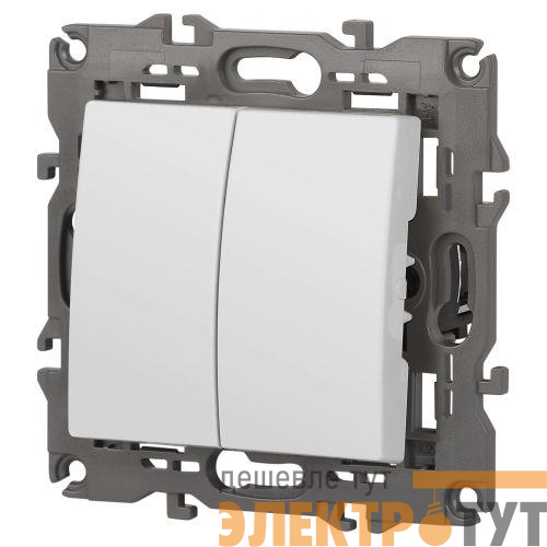 Переключатель 2-клавишный проходной серии Эра Elegance цвет белый матовый 14-1106-01М. Характеристики 10А 250В. Оснащён автоматическими клеммами для надёжной фиксации жил кабеля в механизме. Рамки приобретаются отдельно.