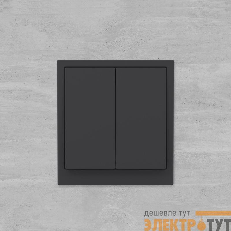 Двухклавишный переключатель применяется для управления двумя контурами освещения из 2 мест. Предназначен для скрытого монтажа в стену. Характеристики устройства: номинальное напряжение 250 В, номинальный ток 16 А. Материал: металл, поликарбонат. Пластиковые элементы имеют цвет "Черный уголь". Для декоративного оформления электроустановочных изделий используются рамки серии "KANT".