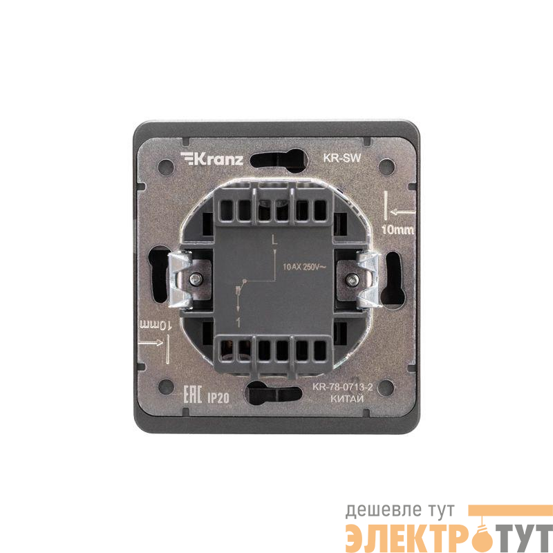 Механизм одноклавишного переключателя скрытой установки KRANZ предназначен для подключения к электрической сети внутри помещений. Используется для управления светом из двух мест.