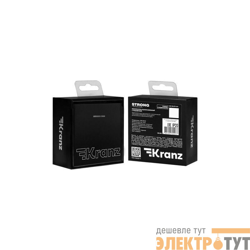 KR-78-0718-5 | Переключатель перекрестный 1-кл. СП STRONG 10А с подсветкой антрацит Kranz