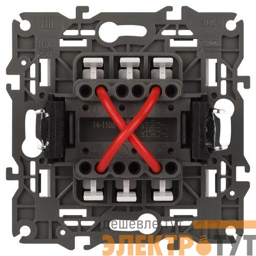 Переключатель 1-клавишный перекрёстный (промежуточный) серии Эра Elegance цвет титан 14-1108-16. Характеристики 10А 250В. Оснащён автоматическими клеммами для надёжной фиксации жил кабеля в механизме. Рамки приобретаются отдельно.