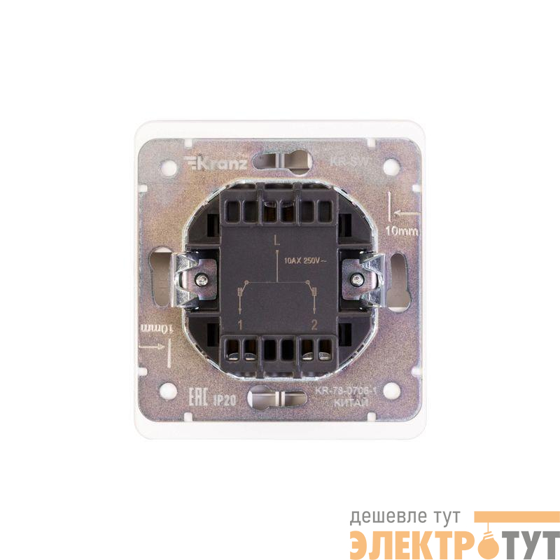 Механизм двухклавишного переключателя скрытой установки KRANZ предназначен для подключения к электрической сети внутри помещений. Используется для управления светом из нескольких мест.