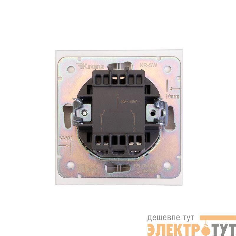 Механизм двухклавишного переключателя скрытой установки KRANZ предназначен для подключения к электрической сети внутри помещений. Используется для управления светом из нескольких мест.