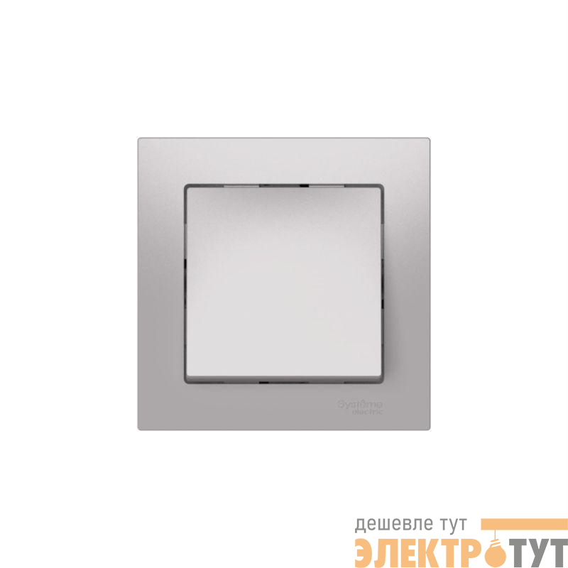 Механизм с быстрозажимными клеммами 1-клавишного выключателя в сборе Systeme Electric (ранее Schneider Electric) серии AtlasDesign в цвете алюминий подходит для сетей 250 В, на ток 10 А.