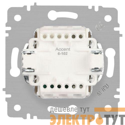 Выключатель 1-клавишный с подсветкой серии Intro Accent скрытой установки механизм цвет шампань 6-102-04. Номинальные характеристики 10А 250В. Выполнен из негорючего термопласта, оснащён винтовыми клеммами. Парные клеммы обеспечивают соединение шлейфом. Монтаж в подрозетник производится и на лапки, и на винты. Рамка приобретается отдельно. В серии представлены рамки до 5 постов: на 1 пост - 6-501-хх, на 2 поста - 6-502-хх, на 3 поста - 6-503-хх, на 6 поста - 4-504-хх, на 5 постов - 6-505-хх (где хх - цветовой код: 01 - белый, 01М - матовый белый, 02 - слоновая кость, 03 - алюминий, 04 - шампань, 05 - антрацит, 06 - перламутр, 07 - графит, 08 - бронза, 09 - титан, 10 - венге, 11 - сосна)
