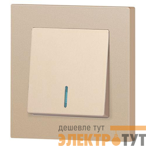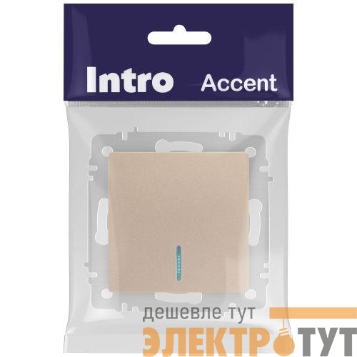Б0063475 | Выключатель 1-кл. СП Accent 6-102-04 10А IP20 250В с подсветкой AL/CU шампань Intro