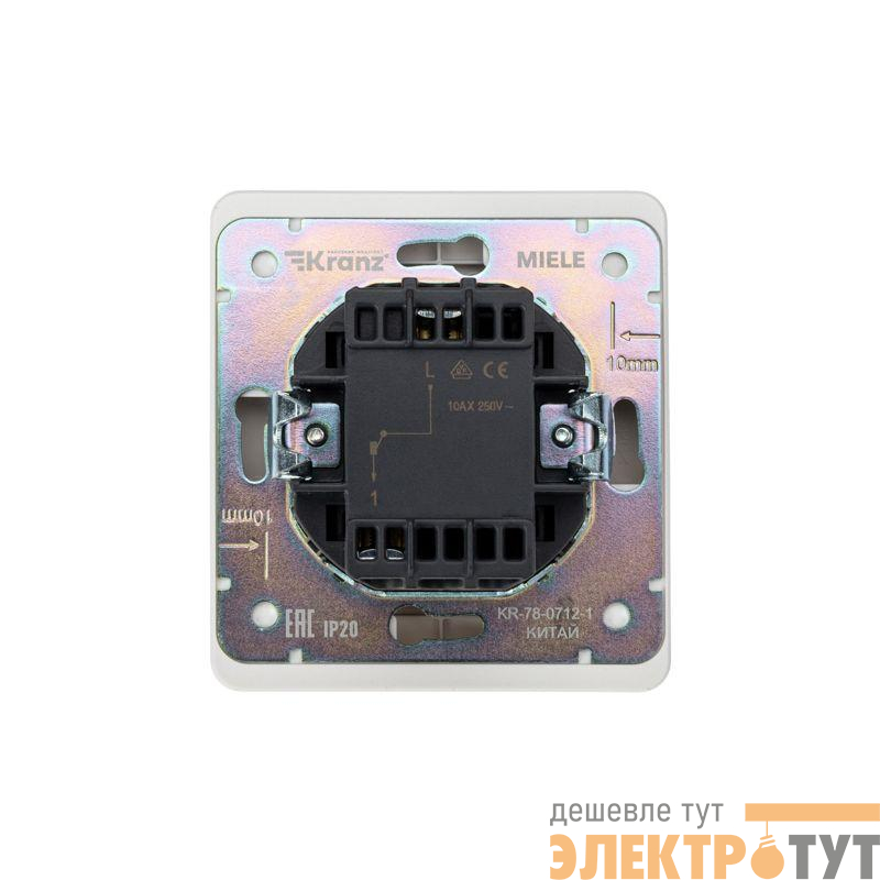 Механизм одноклавишного выключателя скрытой установки KRANZ предназначен для подключения к электрической сети внутри помещений. Используется для подачи сигнала и управления звонком.
