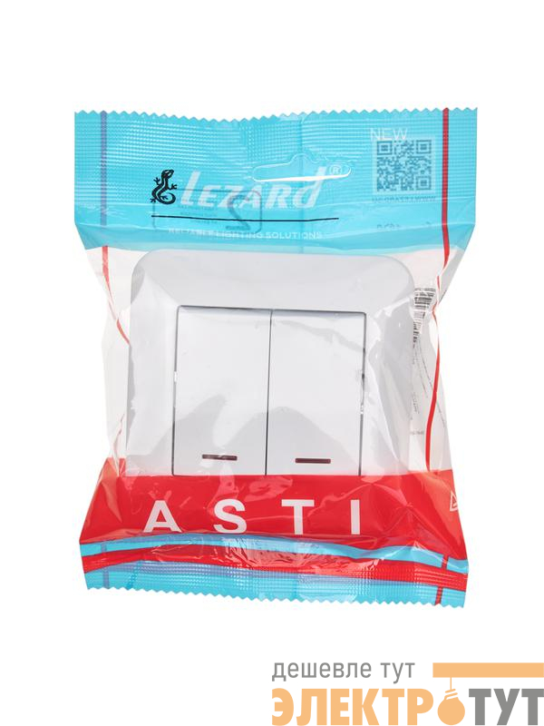 7081-0202-112 | Выключатель 2-кл. 1п СП ASTI 10А IP20 с подсветкой в сборе бел. LEZARD