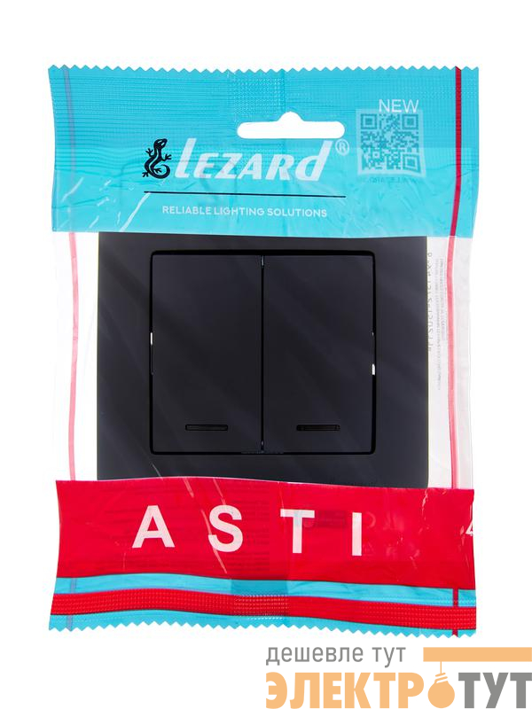 7081-4242-112 | Выключатель 2-кл. 1п СП ASTI 10А IP20 с подсветкой в сборе черн. бархат LEZARD