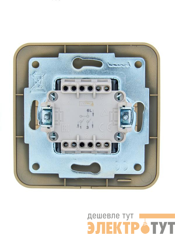 7081-3636-101 | Выключатель 2-кл. 1п СП ASTI 10А IP20 в сборе золото. LEZARD