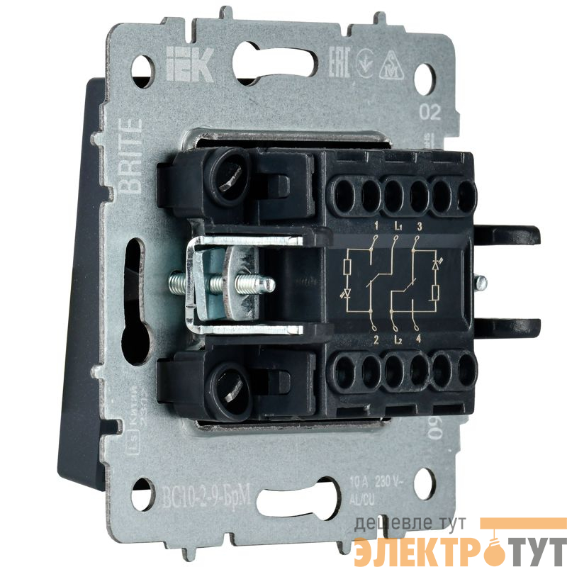 | Выключатель 2-кл. BRITE 10А ВС10-2-9-БрМ для отелей с индик. механизм маренго IEK BR-V20-2-10-K35