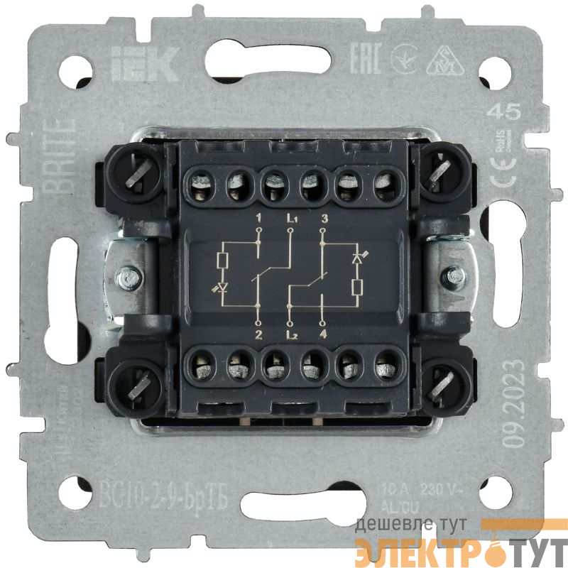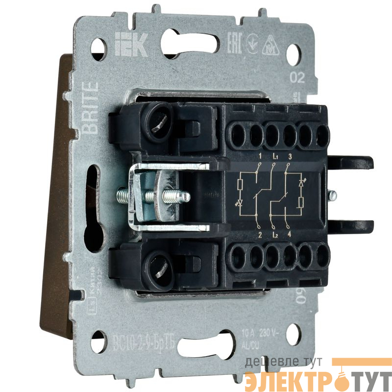 | Выключатель 2-кл. BRITE 10А ВС10-2-9-БрТБ для отелей с индик. механизм бронза IEK BR-V20-2-10-K45