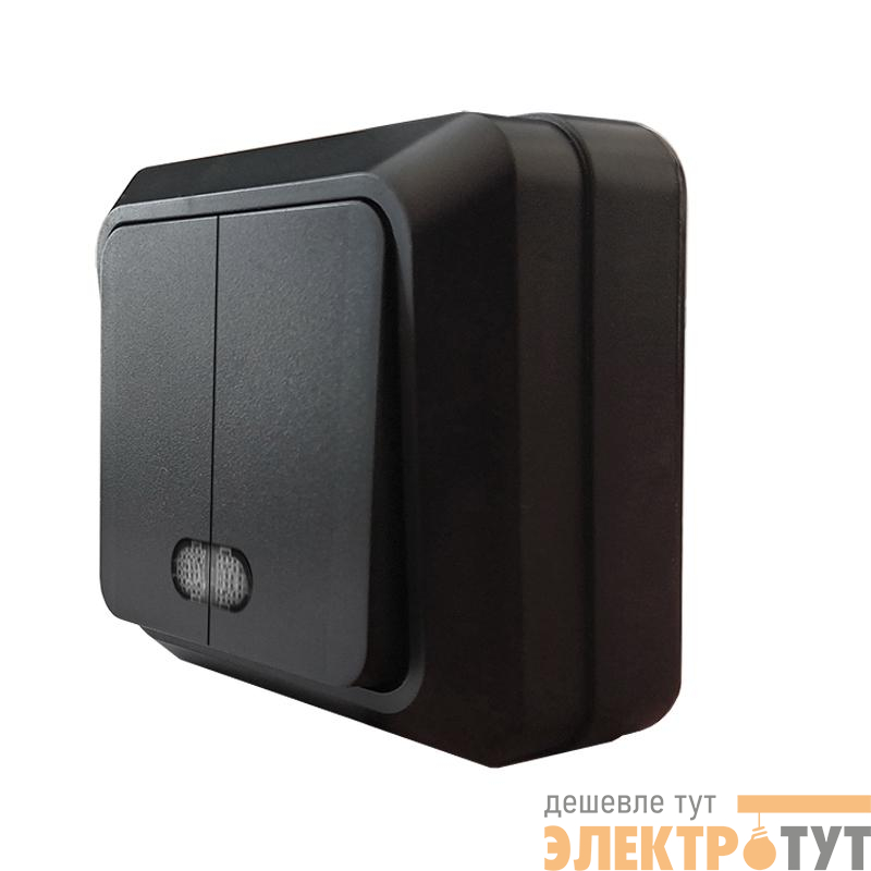 2214 | Выключатель 2-кл. ОП Олимп 10А IP20 с подсветкой черн. Universal