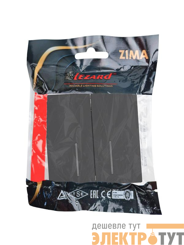 704-4288-112QC | Выключатель 2-кл. с индик. СП ZIMA IP20 10А безвинт. зажим черн. бархат LEZARD