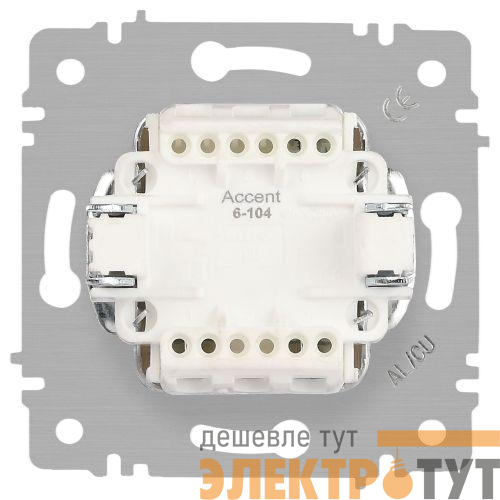 Выключатель 2-клавишный серии Intro Accent скрытой установки механизм цвет графит 6-104-07. Номинальные характеристики 10А 250В. Выполнен из негорючего термопласта, оснащён винтовыми клеммами. Парные клеммы обеспечивают соединение шлейфом. Монтаж в подрозетник производится и на лапки, и на винты. Рамка приобретается отдельно. В серии представлены рамки до 5 постов: на 1 пост - 6-501-хх, на 2 поста - 6-502-хх, на 3 поста - 6-503-хх, на 6 поста - 4-504-хх, на 5 постов - 6-505-хх (где хх - цветовой код: 01 - белый, 01М - матовый белый, 02 - слоновая кость, 03 - алюминий, 04 - шампань, 05 - антрацит, 06 - перламутр, 07 - графит, 08 - бронза, 09 - титан, 10 - венге, 11 - сосна)