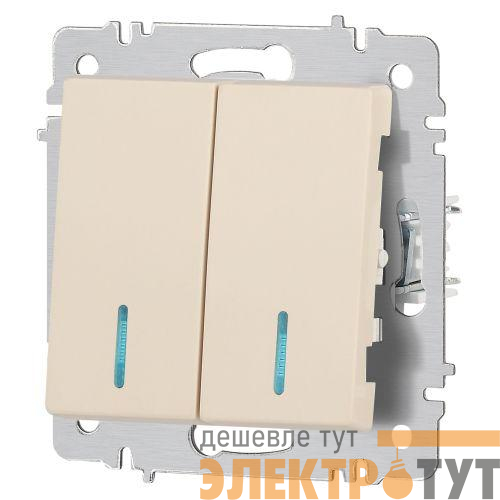 Выключатель 2-клавишный с подсветкой серии Intro Accent скрытой установки механизм цвет слоновая кость 6-105-02. Номинальные характеристики 10А 250В. Выполнен из негорючего термопласта, оснащён винтовыми клеммами. Парные клеммы обеспечивают соединение шлейфом. Монтаж в подрозетник производится и на лапки, и на винты. Рамка приобретается отдельно. В серии представлены рамки до 5 постов: на 1 пост - 6-501-хх, на 2 поста - 6-502-хх, на 3 поста - 6-503-хх, на 6 поста - 4-504-хх, на 5 постов - 6-505-хх (где хх - цветовой код: 01 - белый, 01М - матовый белый, 02 - слоновая кость, 03 - алюминий, 04 - шампань, 05 - антрацит, 06 - перламутр, 07 - графит, 08 - бронза, 09 - титан, 10 - венге, 11 - сосна)
