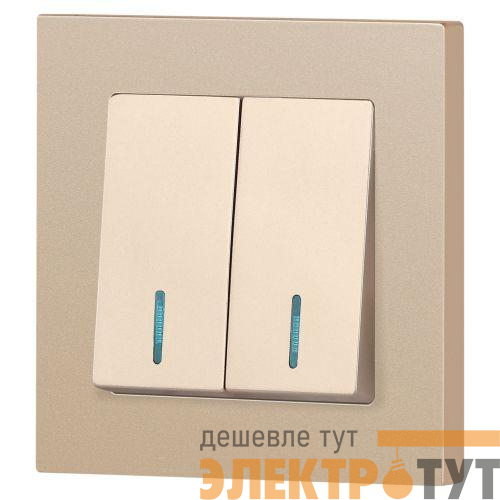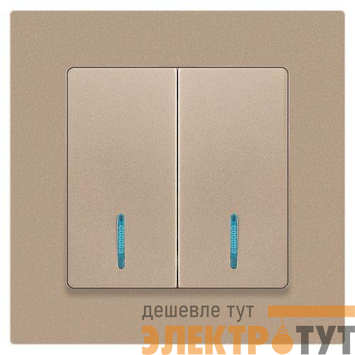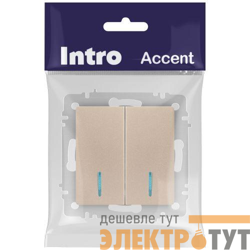 Б0063513 | Выключатель 2-кл. СП Accent 6-105-04 10А IP20 250В с подсветкой AL/CU шампань Intro