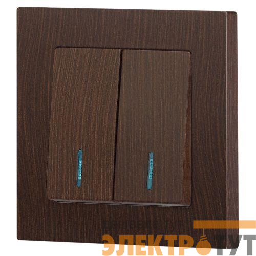 Б0063527 | Выключатель 2-кл. СП Accent 6-105-10 10А IP20 250В с подсветкой AL/CU венге Intro