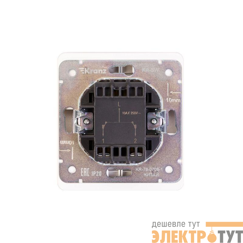 Механизм двухклавишного выключателя скрытой установки KRANZ предназначен для включения и выключения одного или двух однофазных потребителей в электрических сетях переменного тока.