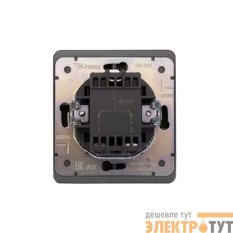 Механизм двухклавишного выключателя скрытой установки KRANZ предназначен для включения и выключения одного или двух однофазных потребителей в электрических сетях переменного тока.