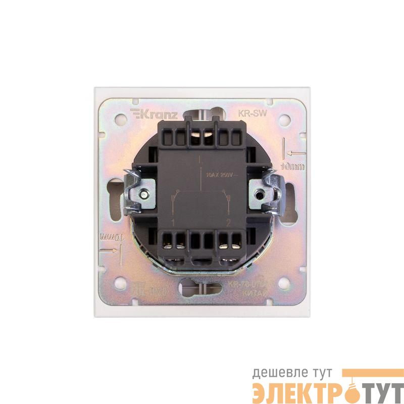 Механизм двухклавишного выключателя скрытой установки KRANZ предназначен для включения и выключения одного или двух однофазных потребителей в электрических сетях переменного тока.