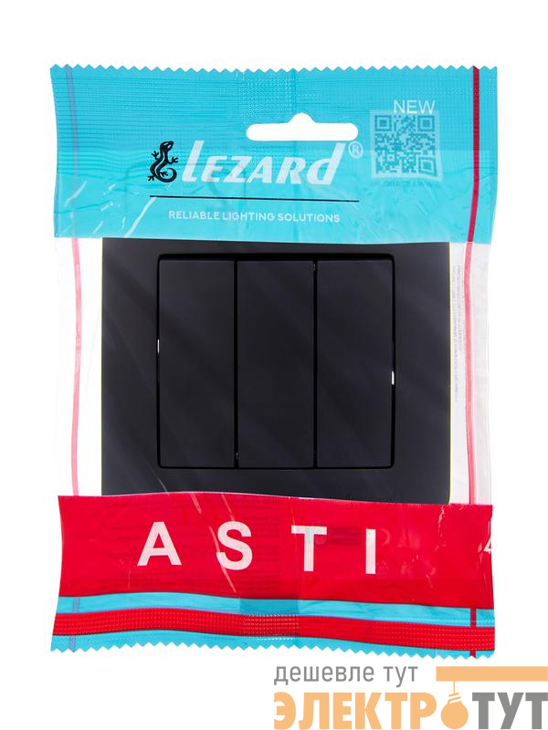 7081-4242-109 | Выключатель 3-кл. 1п СП ASTI 10А IP20 в сборе черн. бархат LEZARD