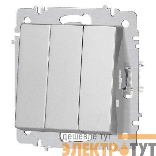 Выключатель 3-клавишный серии Intro Accent скрытой установки механизм цвет алюминий 6-106-03. Номинальные характеристики 10А 250В. Выполнен из негорючего термопласта, оснащён винтовыми клеммами. Парные клеммы обеспечивают соединение шлейфом. Монтаж в подрозетник производится и на лапки, и на винты. Рамка приобретается отдельно. В серии представлены рамки до 5 постов: на 1 пост - 6-501-хх, на 2 поста - 6-502-хх, на 3 поста - 6-503-хх, на 6 поста - 4-504-хх, на 5 постов - 6-505-хх (где хх - цветовой код: 01 - белый, 01М - матовый белый, 02 - слоновая кость, 03 - алюминий, 04 - шампань, 05 - антрацит, 06 - перламутр, 07 - графит, 08 - бронза, 09 - титан, 10 - венге, 11 - сосна).
