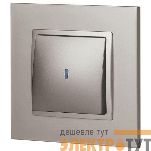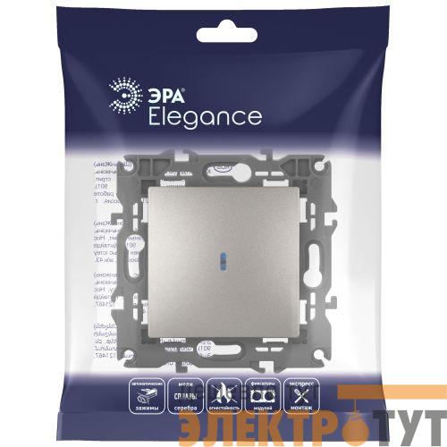 Выключатель 1-клавишный с подсветкой серии Эра Elegance цвет титан 14-1102-16. Характеристики 10А 250В. Оснащён автоматическими клеммами для надёжной фиксации жил кабеля в механизме. Рамки приобретаются отдельно.
