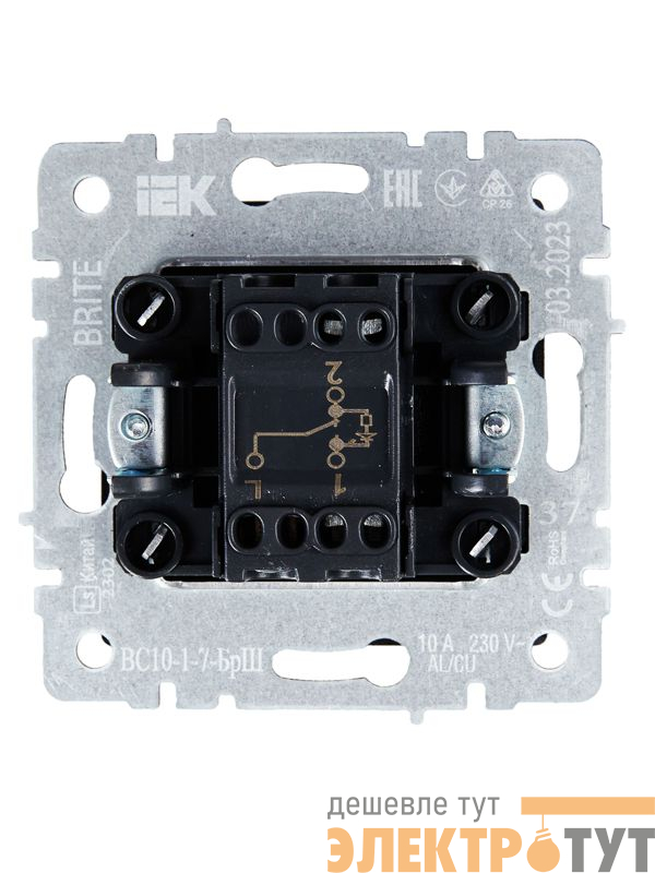 | Выключатель проходной 1-кл. СП BRITE ВС10-1-7-БрШ 10А с индик. механизм шампань IEK BR-V12-1-10-K37