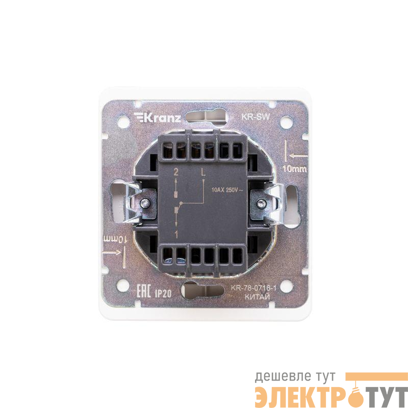 Механизм одноклавишного переключателя скрытой установки KRANZ предназначен для подключения к электрической сети внутри помещений. Используется для управления светом из двух мест.