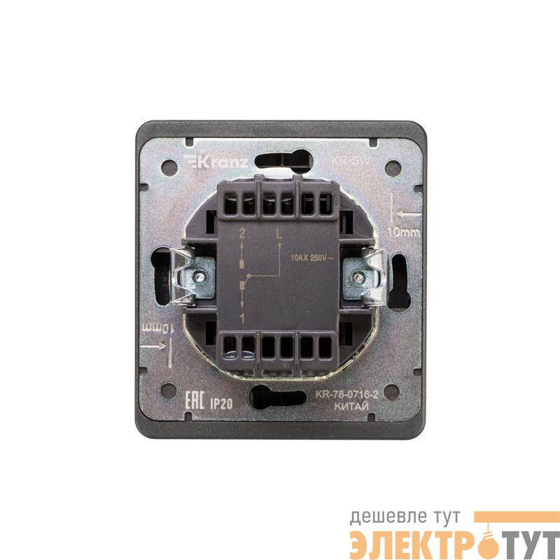 Механизм одноклавишного переключателя скрытой установки KRANZ предназначен для подключения к электрической сети внутри помещений. Используется для управления светом из двух мест.