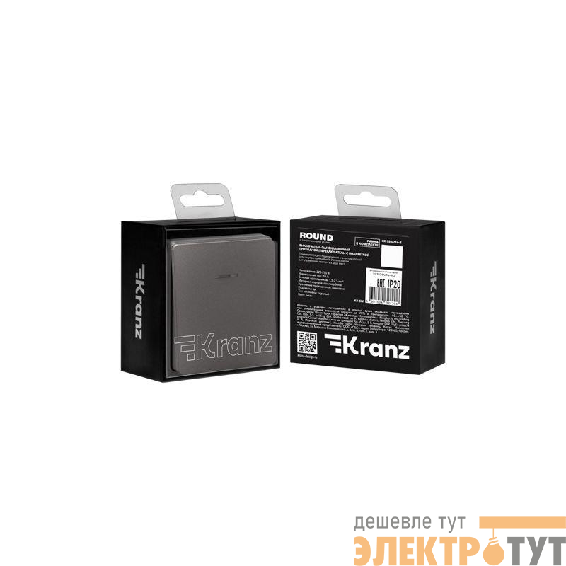 KR-78-0716-2 | Выключатель проходной (переключатель) 1-кл. СП ROUND MIELE 10А с подсветкой титан Kranz