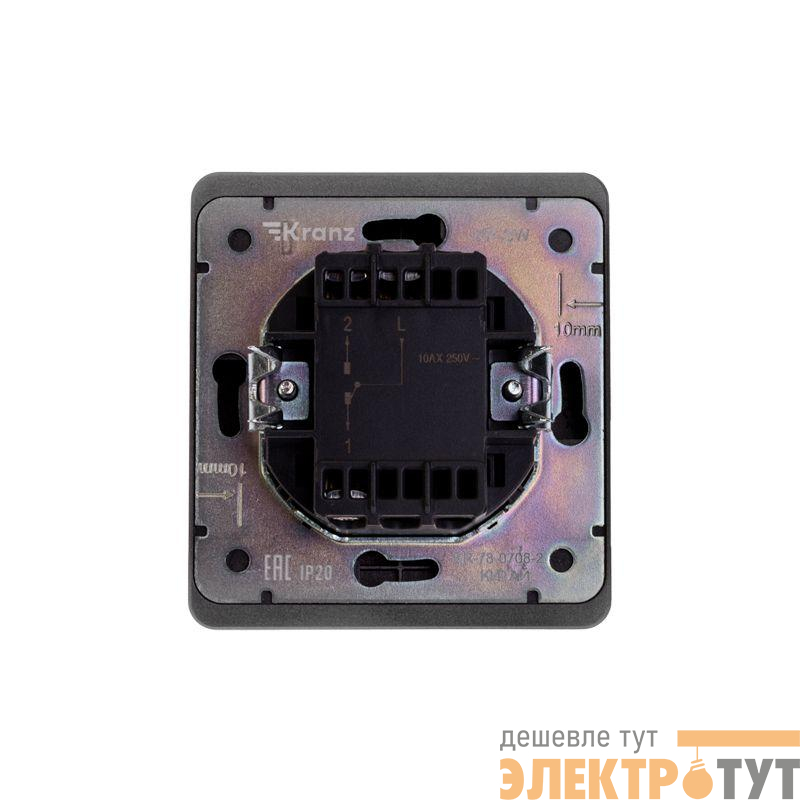 Механизм одноклавишного переключателя скрытой установки KRANZ предназначен для подключения к электрической сети внутри помещений. Используется для управления светом из двух мест.